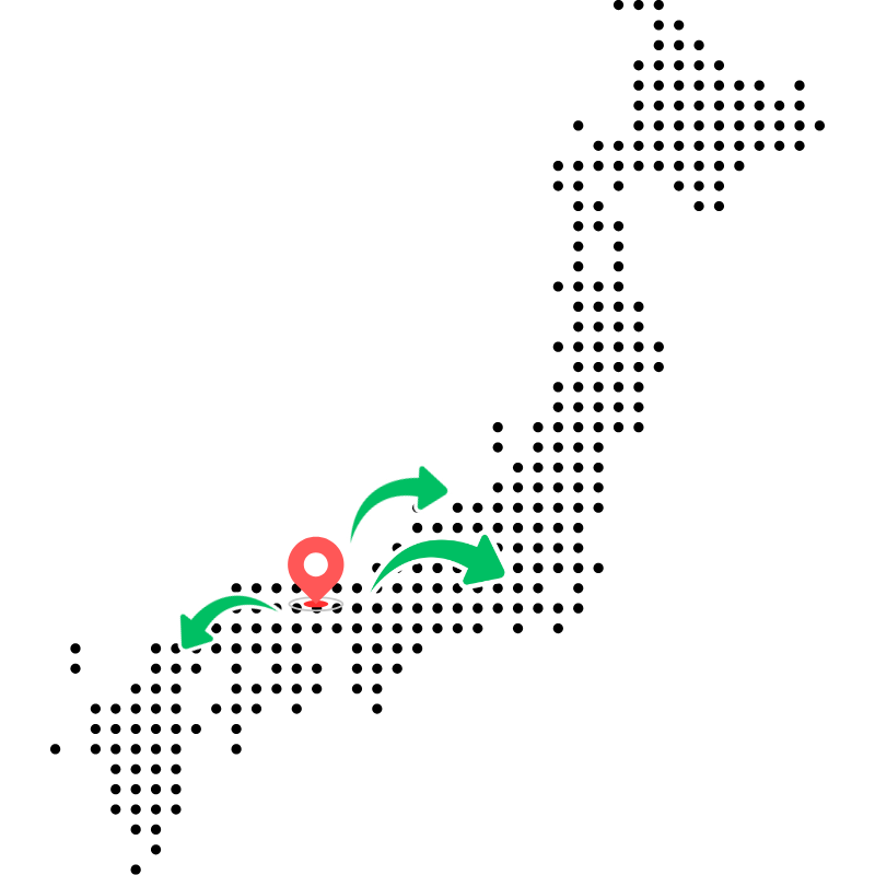 関西圏を中心に、輸送内容に応じて四国・北陸・中部まで対応しています。(西は広島、東は静岡、北は石川まで)